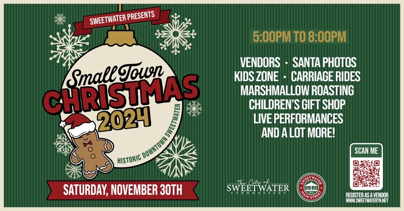 As we begin the busy holiday season here in Sweetwater, we look forward to seeing many of you! Our nationally recognized Small Town Christmas is this Saturday, November 30, 2024 along with Small Business Saturday. For many of our independently owned small businesses, this day is their best business day of the year. We saw over 23,000 visitors come to Sweetwater last year on Small Business Saturday and we hope to see even more of you this year!