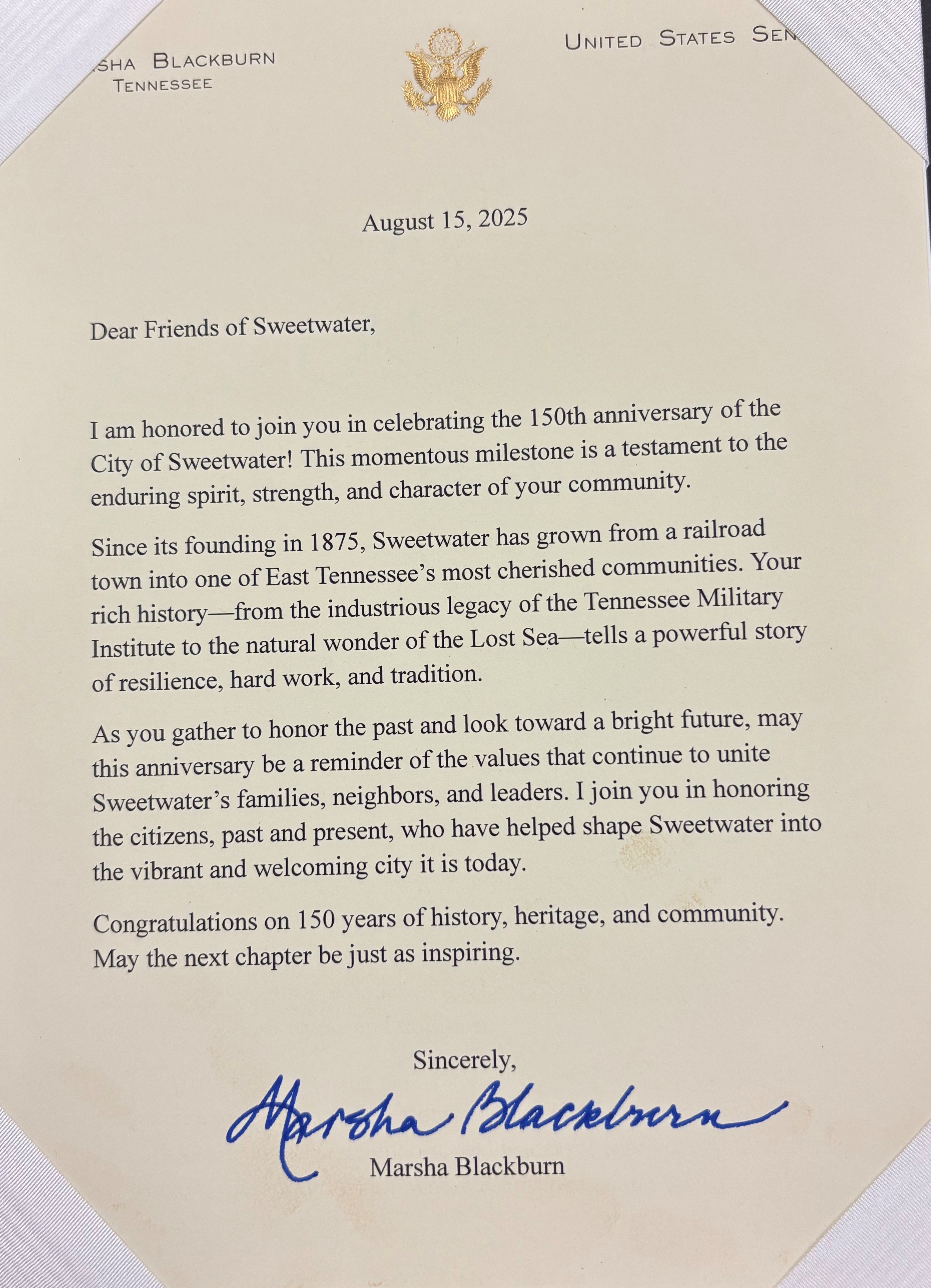 We want Sweetwater to be a destination for anyone looking for small town charm and a little slower pace of life. We hope you come visit us as part of our 150th Celebration in 2025. We are happy to welcome you to the Sweetest City in Tennessee!